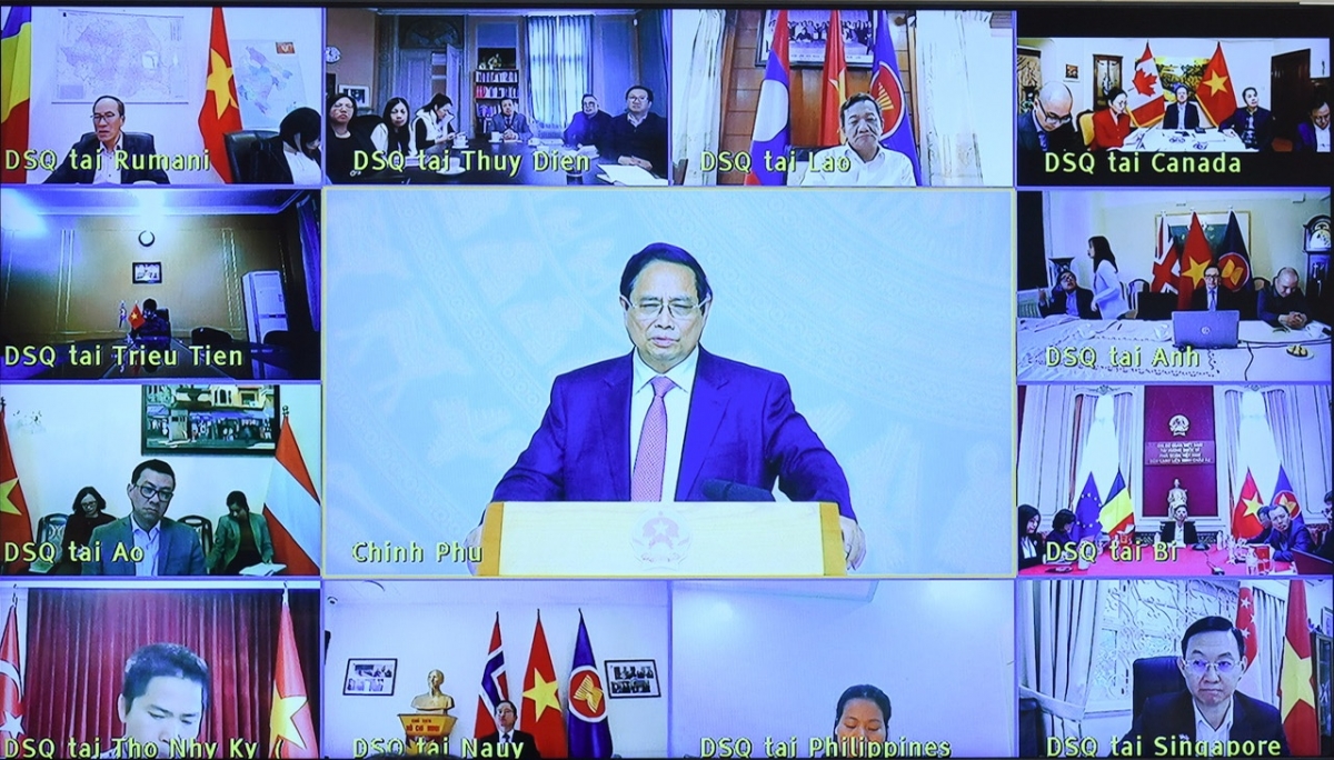 Hội nghị được tổ chức trực tiếp kết hợp trực tuyến tại đầu cầu trụ sở Chính phủ với đầu cầu các cơ quan đại diện Việt Nam ở nước ngoài. Tại hội nghị, Thủ tướng nhấn mạnh bối cảnh mới mặc dù có những thách thức, khó khăn... nhưng là cơ hội để tái cấu trúc nền kinh tế, cơ hội để vươn lên, tự lực tự cường và trưởng thành hơn.