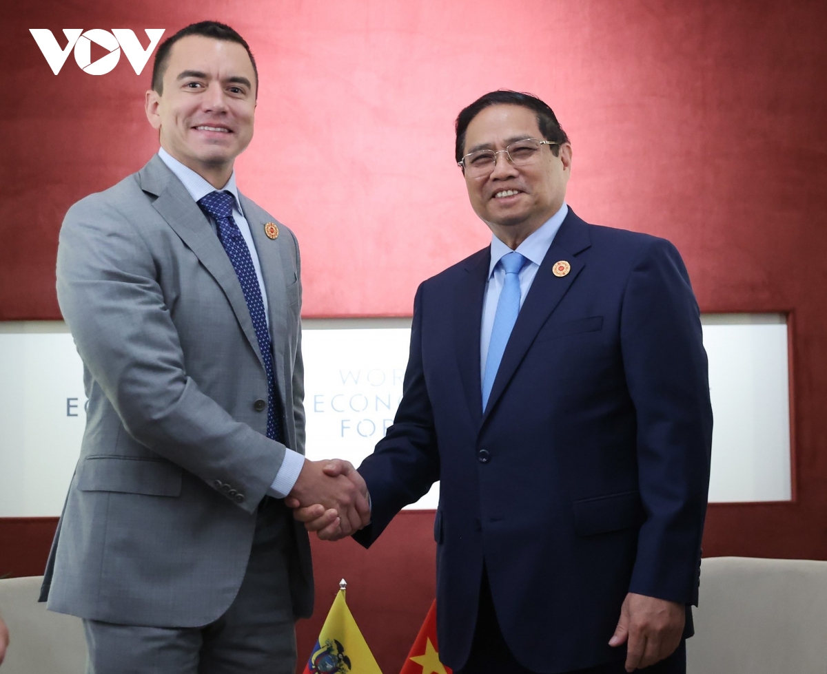 Trong trao đổi với Tổng thống Daniel Noboa, Thủ tướng Chính phủ Phạm Minh Chính khẳng định Việt Nam luôn coi trọng quan hệ hợp tác nhiều mặt với Ecuador và đề nghị hai bên tiếp tục trao đổi, đàm phán, ký kết các văn kiện hợp tác trong các lĩnh vực thương mại, đầu tư, tài chính, nông nghiệp… Đặc biệt, Thủ tướng đề nghị Ecuador tạo điều kiện thuận lợi cho Tập đoàn Viettel đầu tư, kinh doanh phát triển ngành viễn thông, dịch vụ 5G, chuyển đổi số… tại Ecuador, góp phần thúc đẩy phát triển, tạo việc làm cho thanh niên, lao động trẻ của Ecuardor. Thủ tướng Phạm Minh Chính thay mặt Lãnh đạo Đảng, Nhà nước Việt Nam trân trọng mời Tổng thống Noboa thăm chính thức Việt Nam trong năm nay để đẩy mạnh hơn nữa quan hệ hợp tác giữa hai nước.