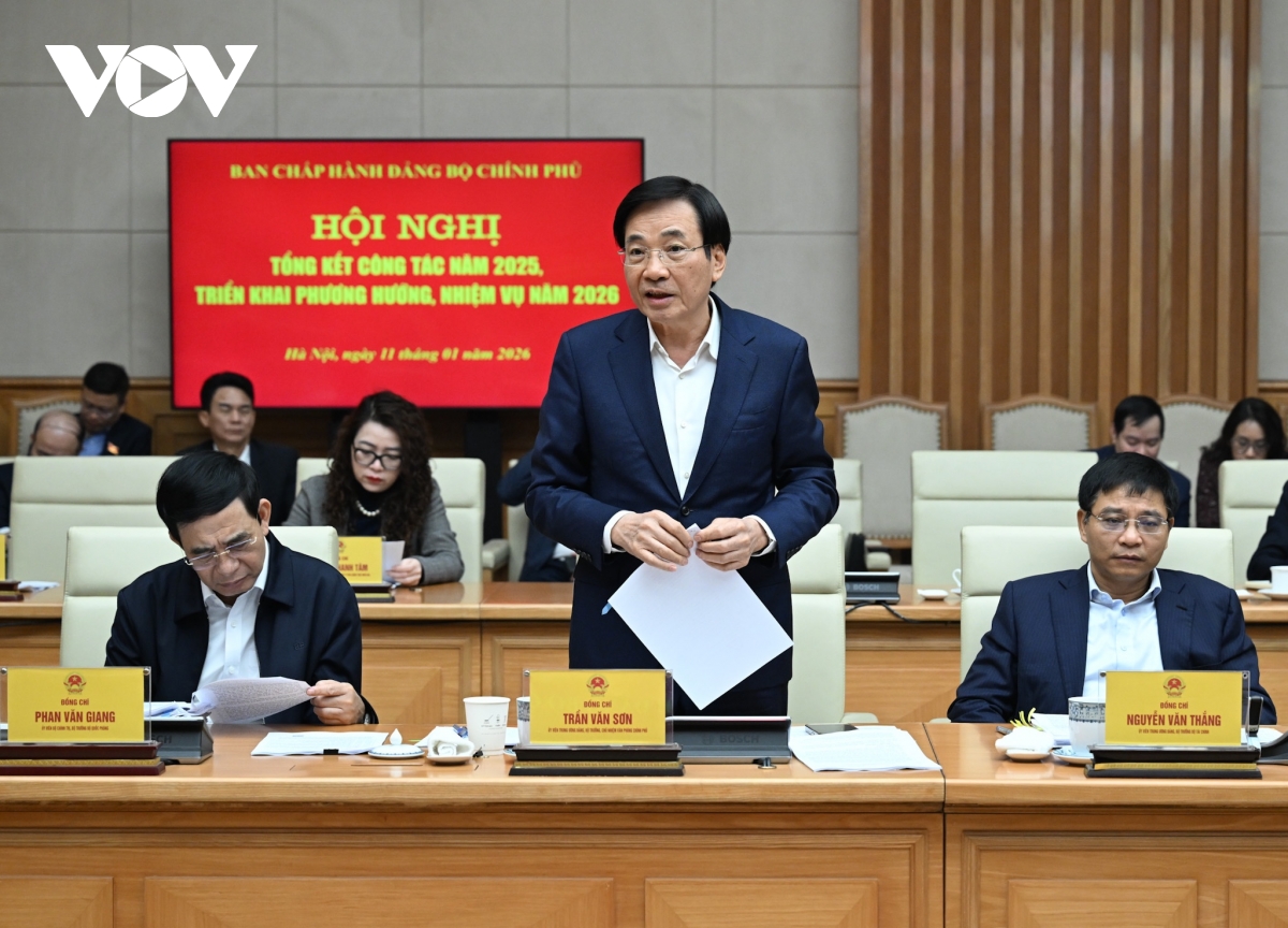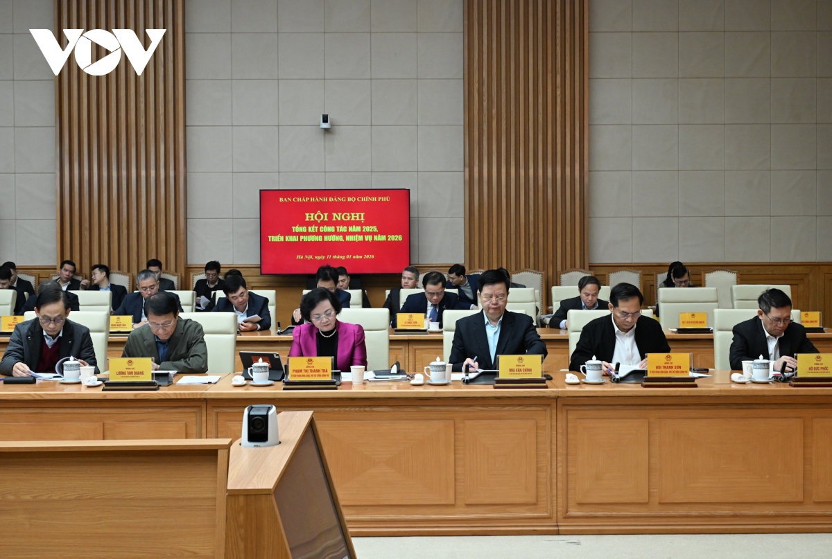 VOV.VN - Sáng 11/1, tại Trụ sở Chính phủ, Bí thư Đảng ủy Chính phủ, Thủ tướng Chính phủ Phạm Minh Chính chủ trì Hội nghị tổng kết công tác năm 2025, triển khai phương hướng, nhiệm vụ năm 2026 của Ban Chấp hành Đảng bộ Chính phủ.