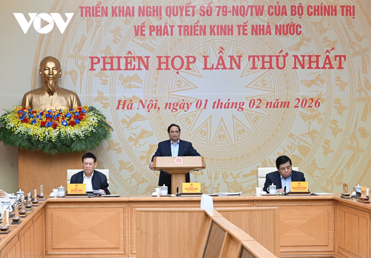 VOV.VN - Sáng nay (1/2), tại Trụ sở Chính phủ, Thủ tướng Phạm Minh Chính, Trưởng Ban chỉ đạo Quốc gia triển khai Nghị quyết số 79 của Bộ Chính trị về phát triển kinh tế nhà nước chủ trì Phiên họp lần thứ Nhất.