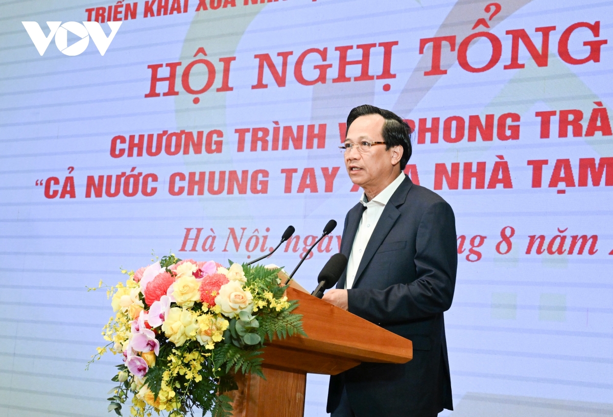 "Hôm nay, Cơ quan thường trực Ban Chỉ đạo Trung ương xin trân trọng báo cáo trước Đảng, trước đồng bào, đồng chí, chiến sỹ trong cả nước và bạn bè quốc tế rằng "Việt Nam đã cơ bản hoàn thành mục tiêu xóa nhà tạm, nhà dột nát trên phạm vi cả nước", về đích sớm trước 5 năm 4 tháng so với mục tiêu đặt ra tại Nghị quyết số 42-NQ/TW", ông Đào Ngọc Dung cho biết.