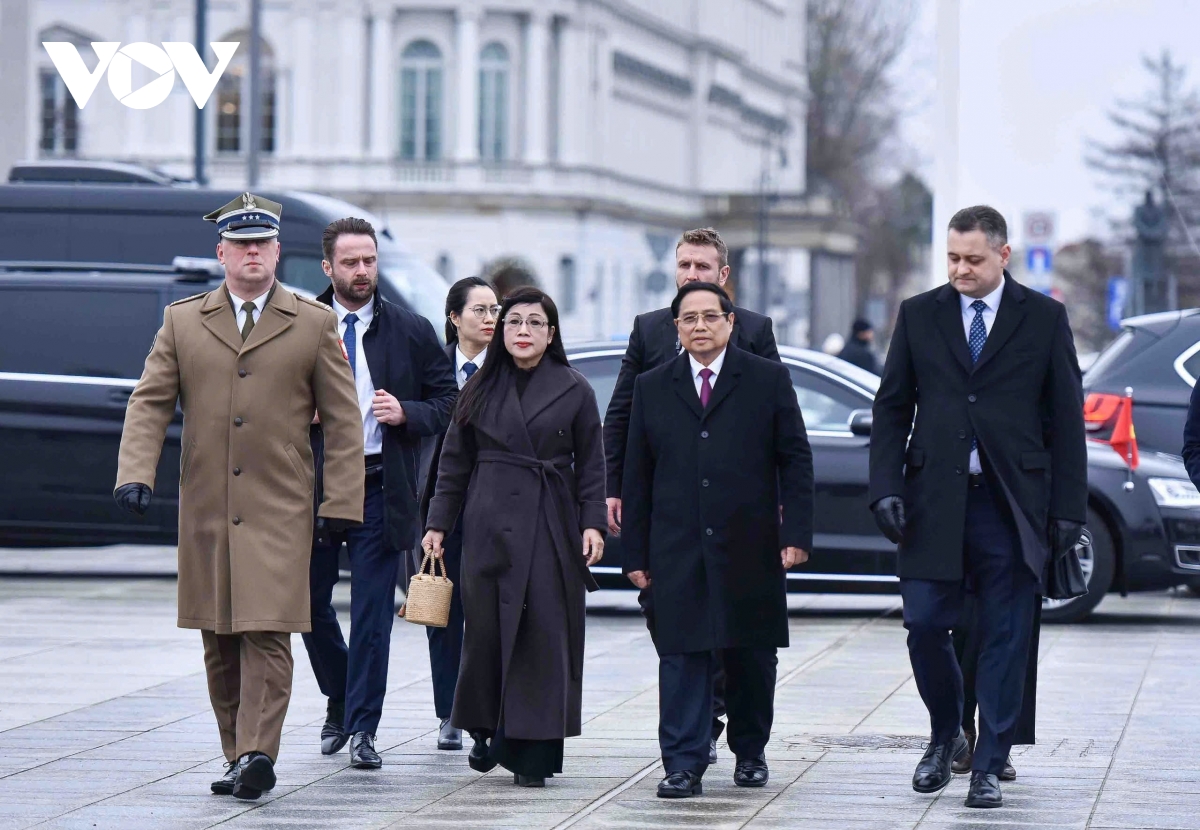 VOV.VN - Tối 15/1 (giờ địa phương), chuyên cơ chở Thủ tướng Phạm Minh Chính và Phu nhân cùng đoàn đại biểu cấp cao Việt Nam đã hạ cánh xuống Thủ đô Warsaw bắt đầu chuyến thăm chính thức Ba Lan từ ngày 15-18/1/2025 theo lời mời của Thủ tướng Ba Lan Donald Tusk.