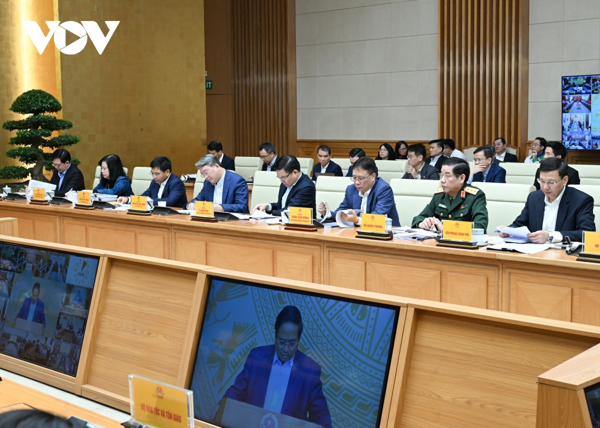 VOV.VN - Sáng 30/12, tại Trụ sở Chính phủ, Thủ tướng Chính phủ Phạm Minh Chính chủ trì Hội nghị quán triệt, triển khai các Nghị quyết của Quốc hội.