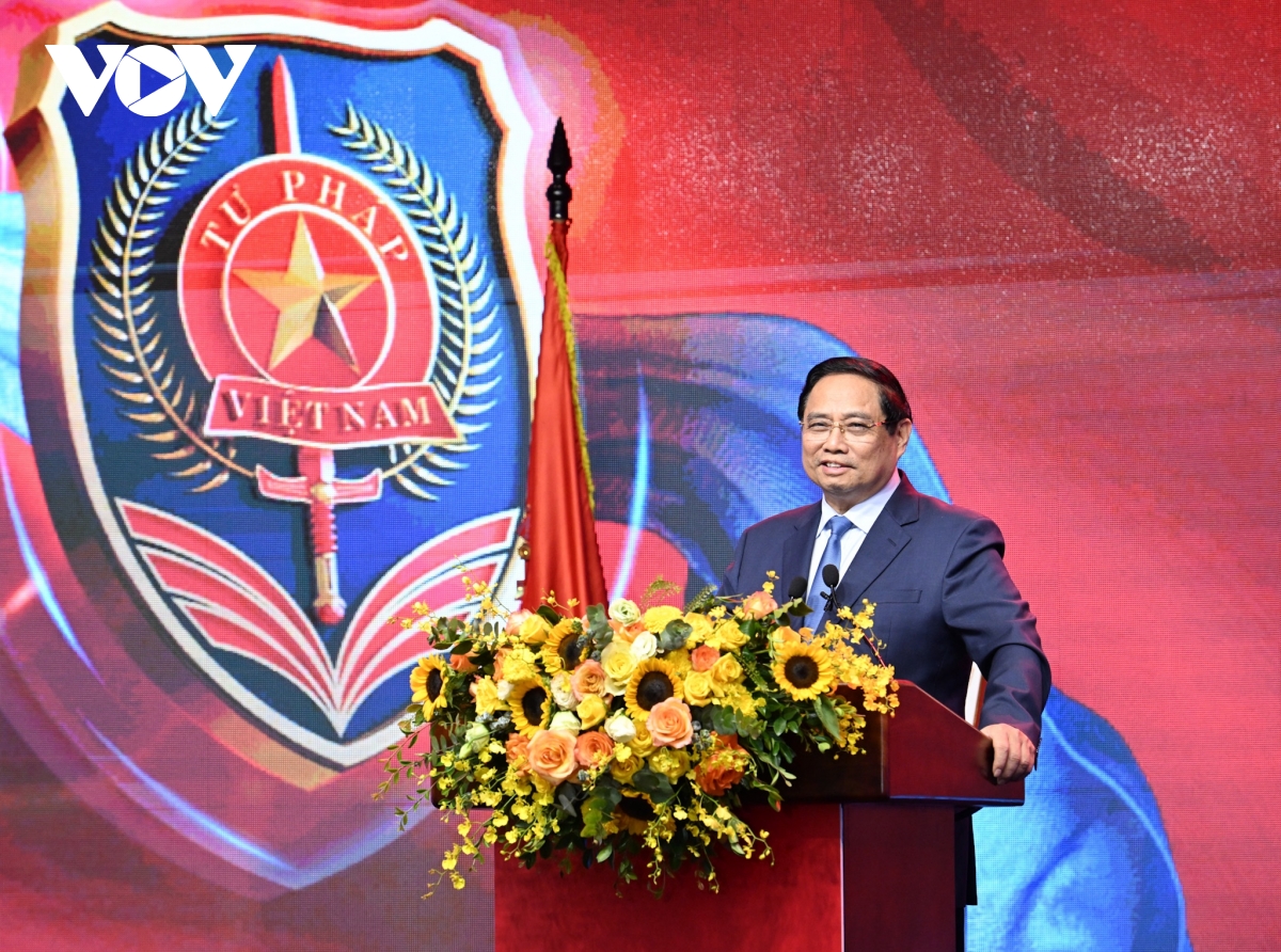 Dự Lễ kỷ niệm, Thủ tướng Chính phủ Phạm Minh Chính đề nghị: ngành Tư pháp cần tạo đột phá trong công tác thi hành pháp luật, xây dựng văn hóa tuân thủ pháp luật, thượng tôn pháp luật.