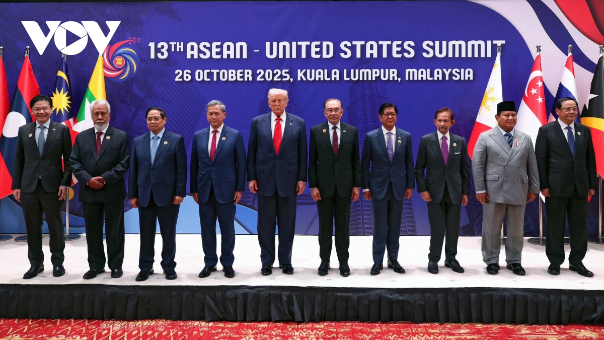VOV.VN - Chiều 26/10, tại Trung tâm Hội nghị Kuala Lumpur, Thủ tướng Chính phủ Phạm Minh Chính cùng Lãnh đạo các nước ASEAN và Tổng thống Hoa Kỳ Donald Trump đã tham dự Hội nghị Cấp cao ASEAN - Hoa Kỳ lần thứ 13.