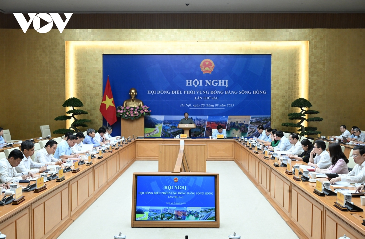 VOV.VN - Sáng 20/9, chủ trì hội nghị lần thứ 6 Hội đồng Điều phối vùng Đồng bằng sông Hồng, Thủ tướng Phạm Minh Chính, Chủ tịch Hội đồng đề nghị, vùng Đồng bằng sông Hồng cần tiên phong đi đầu, đột phá trong phát triển nhanh và bền vững, nâng cao đời sống vật chất, tinh thần của nhân dân trong vùng.