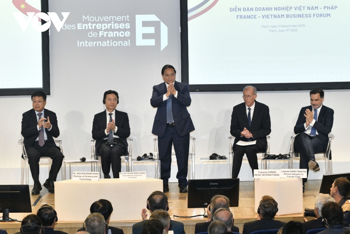 VOV.VN - Trong sáng 11/6, tại Thủ đô Paris, Pháp, Thủ tướng Chính phủ Phạm Minh Chính dự Diễn đàn doanh nghiệp Việt Nam - Pháp. Sự kiện do Bộ Tài chính Việt Nam, Đại sứ quán Việt Nam tại Pháp phối hợp với Nghiệp đoàn giới chủ Pháp (MEDEF) tổ chức.