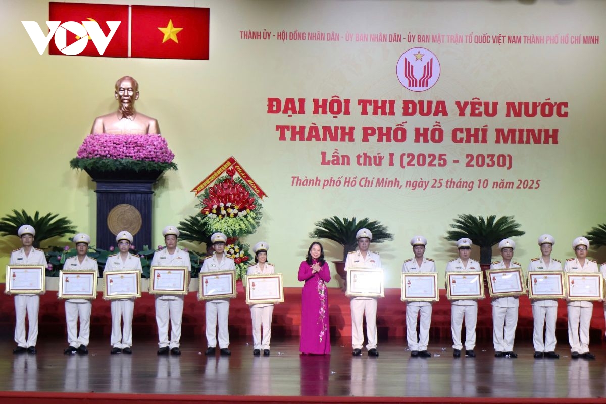 VOV.VN - Sáng 25/10, tại Đại hội thi đua yêu nước TP.HCM lần thứ I nhiệm kỳ 2025 - 2030 do Thành ủy, HĐND, UBND, Ủy ban MTTQ Việt Nam TP.HCM tổ chức, Chủ tịch UBND TP Nguyễn Văn Được đã trao Thư khen của Thủ tướng Chính phủ gửi lực lượng Công an TP.HCM.