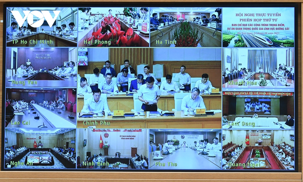 VOV.VN - Sáng nay (23/10), tại Trụ sở Chính phủ, Thủ tướng Chính phủ Phạm Minh Chính, Trưởng Ban Chỉ đạo các công trình trọng điểm, dự án quan trọng quốc gia lĩnh vực đường sắt chủ trì phiên họp lần thứ 4 của Ban Chỉ đạo. Phiên họp được tổ chức trực tuyến đến các tỉnh, thành phố có tuyến đường sắt đi qua.