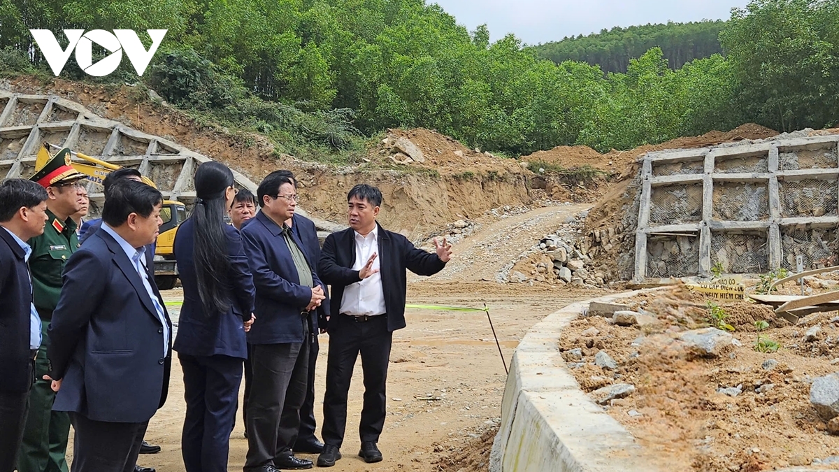 VOV.VN - Sáng 9/2, Thủ tướng Phạm Minh Chính đã đi kiểm tra thực địa và nghe báo cáo về dự án tuyến đường ven biển Dung Quất - Sa Huỳnh qua tỉnh Quảng Ngãi và dự án Đầu tư xây dựng công trình đường bộ cao tốc Bắc - Nam, đoạn Quảng Ngãi - Hoài Nhơn.