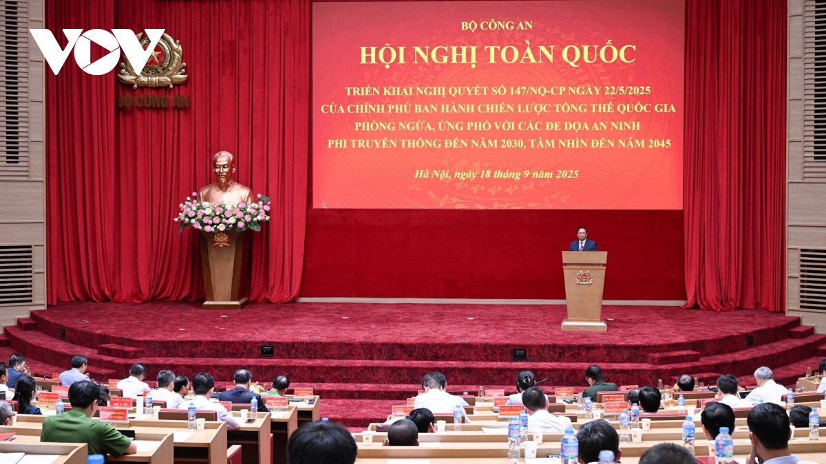 Sáng nay (18/9), tại Hà Nội, Bộ Công an tổ chức Hội nghị toàn quốc triển khai Nghị quyết số 147 ngày 22/5/2025 của Chính phủ ban hành Chiến lược tổng thể quốc gia phòng ngừa, ứng phó với các đe dọa an ninh phi truyền thống đến năm 2030, tầm nhìn đến năm 2045. Thủ tướng Chính phủ Phạm Minh Chính dự hội nghị.
