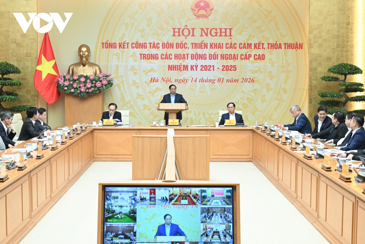 VOV.VN - Ngày 14/1, tại Trụ sở Chính phủ, Thủ tướng Phạm Minh Chính chủ trì Hội nghị tổng kết công tác đôn đốc, triển khai thỏa thuận, cam kết quốc tế trong các hoạt động đối ngoại cấp cao, nhiệm kỳ 2021-2025.