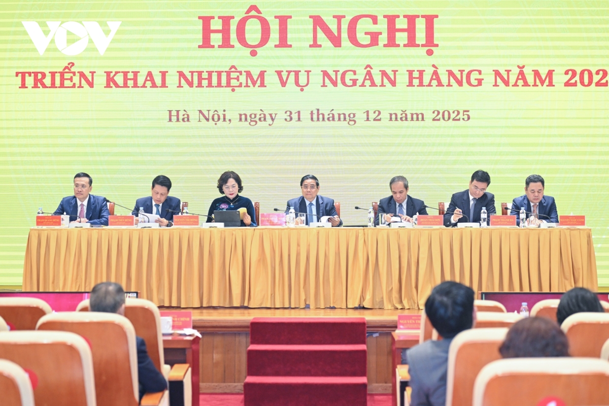 VOV.VN - Sáng 31/12, Thủ tướng dự Hội nghị tổng kết năm 2025 và triển khai nhiệm vụ ngành Ngân hàng năm 2026, yêu cầu toàn ngành đổi mới thể chế, đẩy mạnh cải cách hành chính, điều hành linh hoạt chính sách tiền tệ, tiên phong trên mặt trận kinh tế, góp phần thúc đẩy tăng trưởng hai con số, giữ vững ổn định vĩ mô.