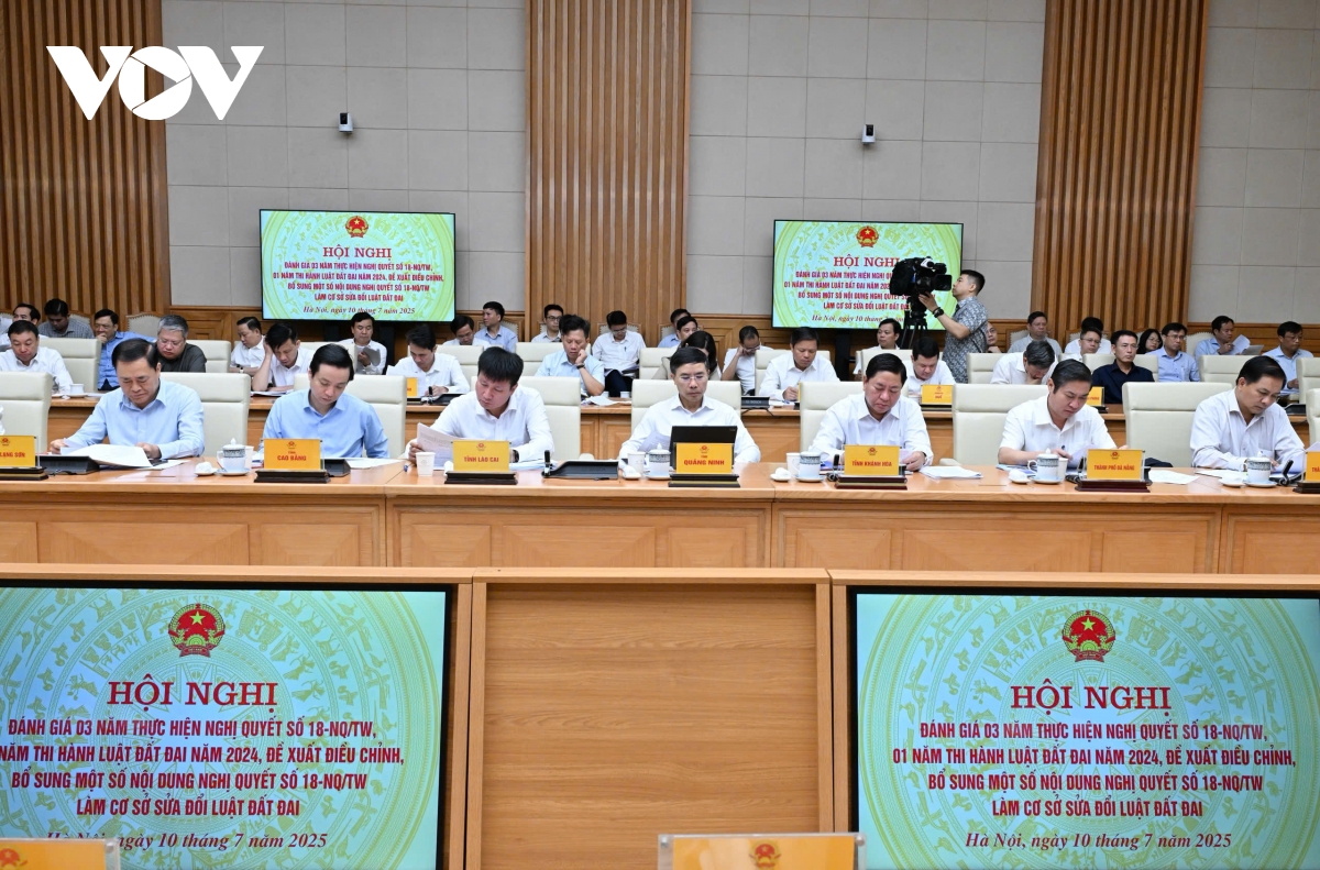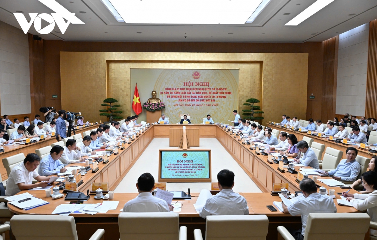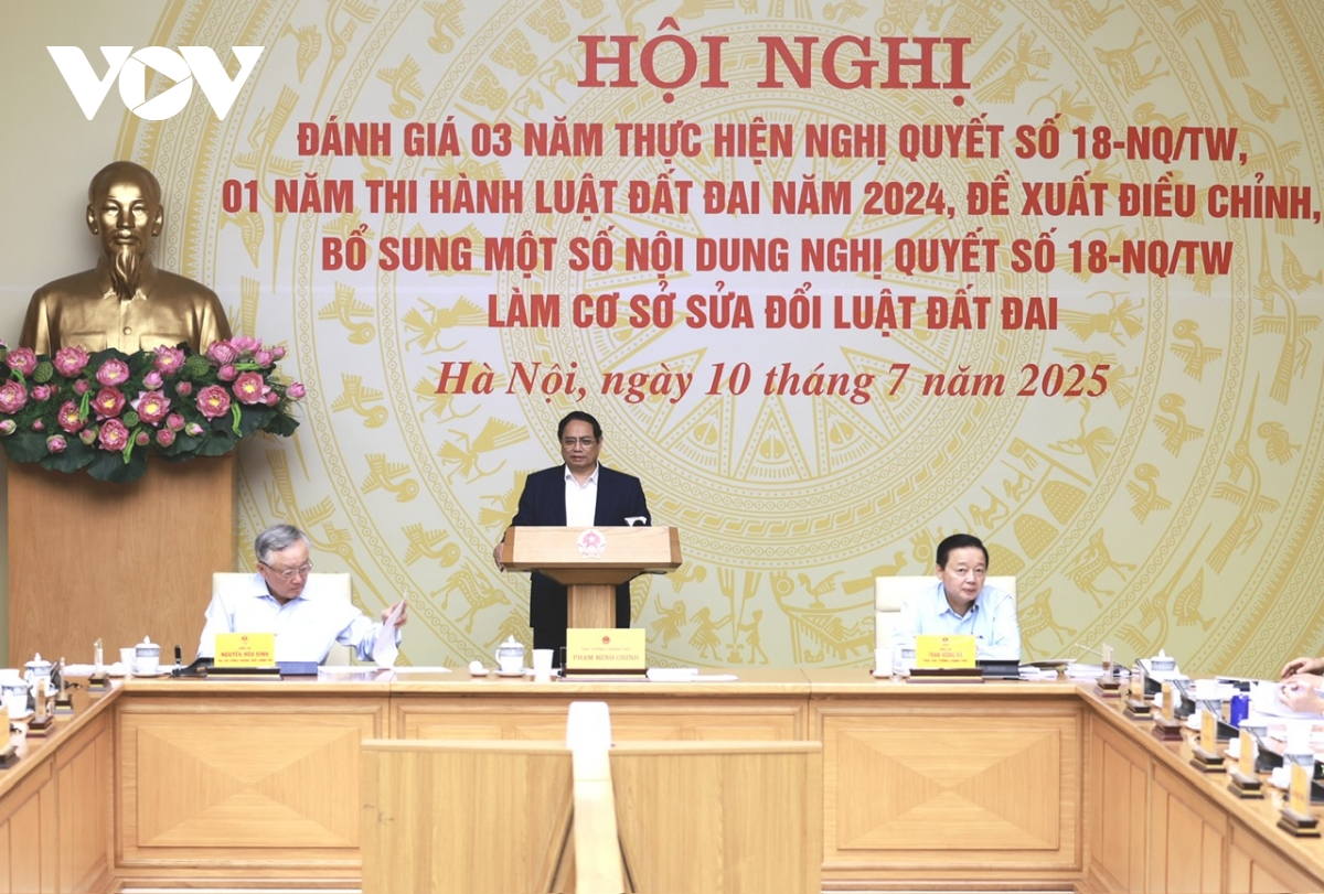 Phát biểu tại Hội nghị, Thủ tướng Phạm Minh Chính nêu rõ: đánh giá 3 năm thực hiện Nghị quyết số 18 của Trung ương và 1 năm thực hiện Luật Đất đai năm 2024, là nhiệm vụ rất quan trọng và cấp bách đòi hỏi phải thực hiện trong một thời gian ngắn nhưng phải đảm bảo yêu cầu về mặt chất lượng để tháo gỡ các vướng mắc và điều chỉnh, bổ sung Nghị quyết số 18 và làm cơ sở sửa đổi, bổ sung Luật Đất đai năm 2024.