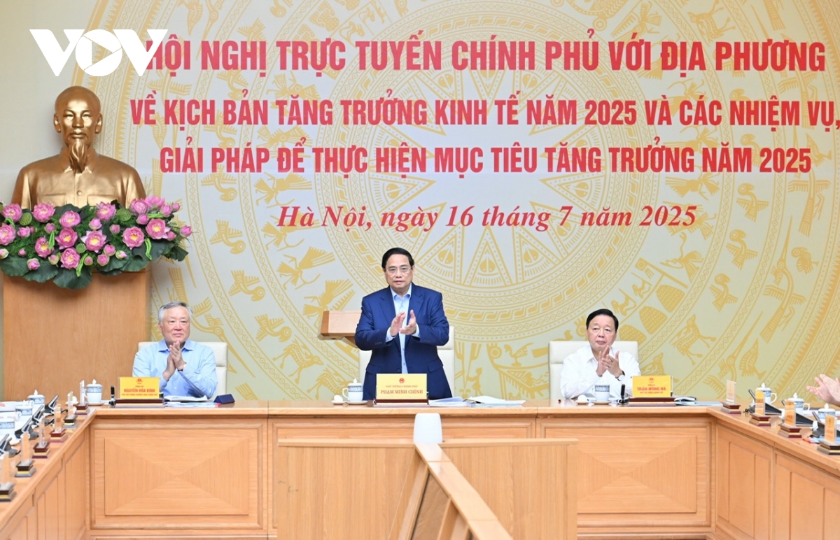 VOV.VN - Sáng 16/7, Thủ tướng Phạm Minh Chính chủ trì Hội nghị trực tuyến Chính phủ với địa phương về kịch bản tăng trưởng kinh tế và các nhiệm vụ, giải pháp để thực hiện mục tiêu tăng trưởng năm 2025.