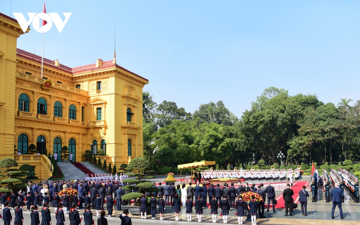 VOV.VN - Chiều 14/1, tại Phủ Chủ tịch, Thủ tướng Chính phủ Phạm Minh Chính chủ trì Lễ đón chính thức Thủ tướng Chính phủ Liên bang Nga Mikhail Vladimirovich Mishustin thăm chính thức Việt Nam từ ngày 14 -15/1.