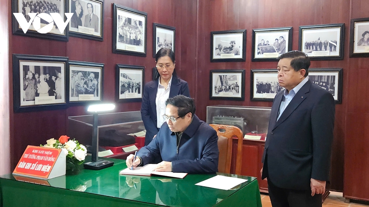 Thủ tướng Phạm Minh Chính ghi sổ lưu niệm tại Khu lưu niệm cố Thủ tướng Phạm Văn Đồng.