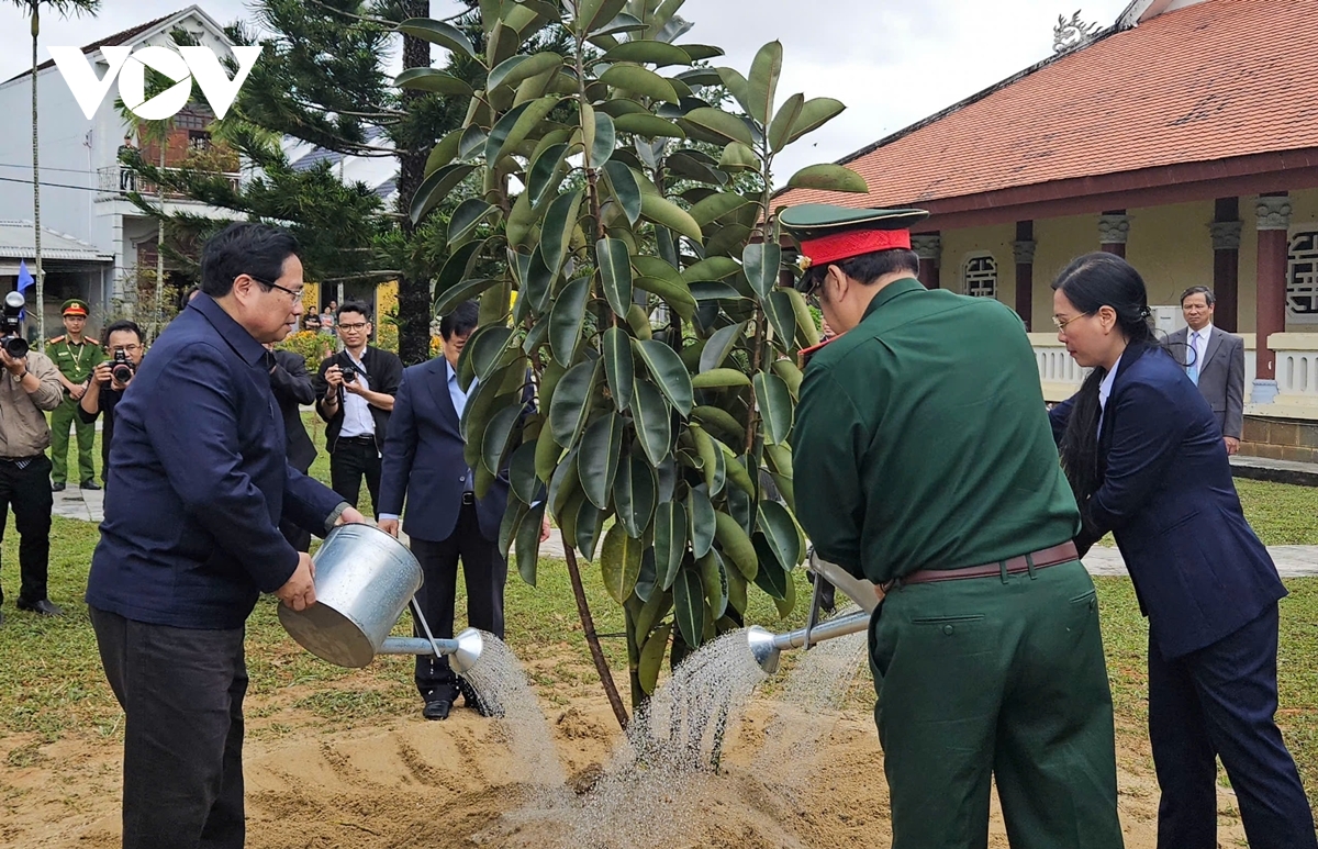 Thủ tướng Phạm Minh Chính trồng cây tại Khu lưu niệm cố Thủ tướng Phạm Văn Đồng.