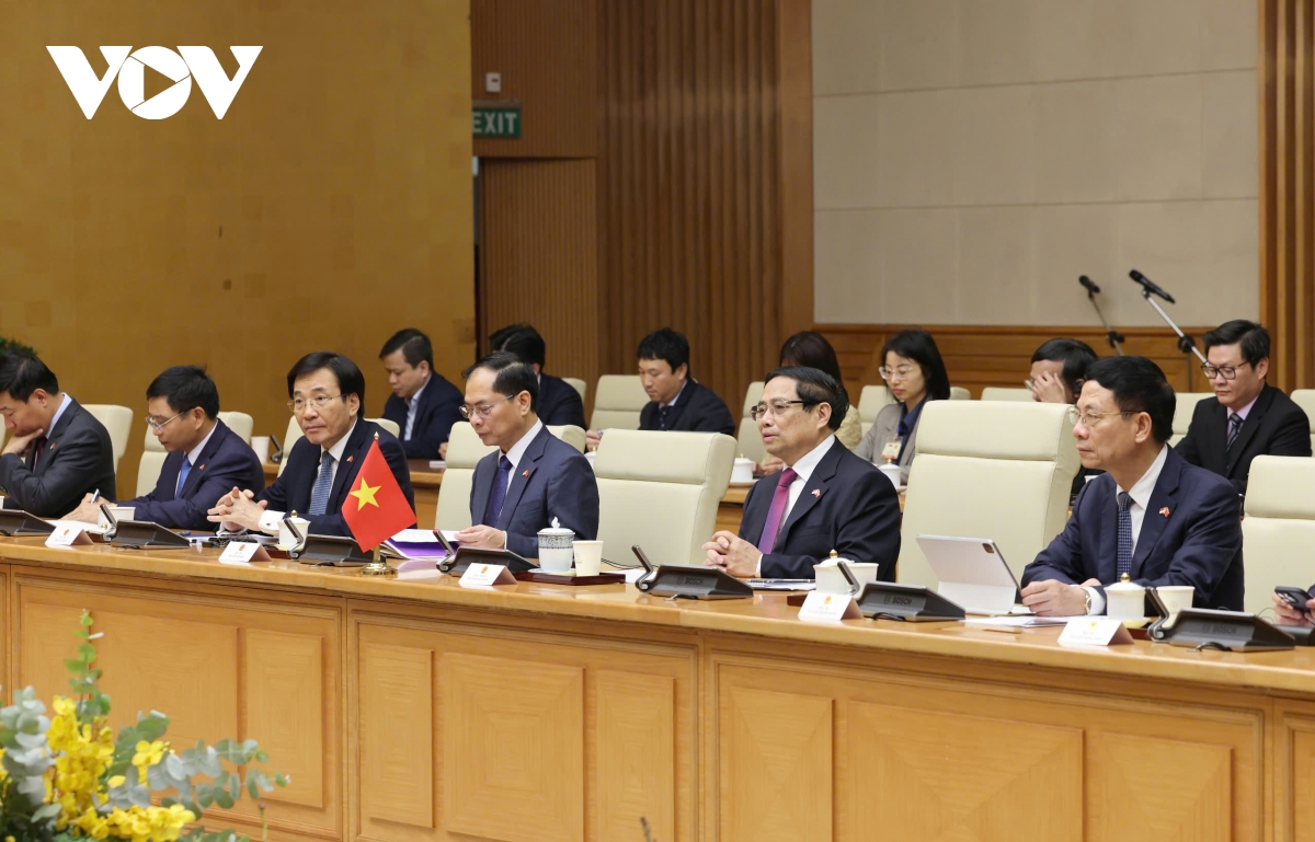 "Thay mặt lãnh đạo Đảng, Chính phủ và nhân dân Việt Nam tôi rất vui mừng và nhiệt liệt chào đón Thủ tướng Lawrence Wong lần đầu tiên thăm Việt Nam trên cương vị Thủ tướng Singapore. Chúng ta đã có nhiều lần gặp nhau, nhưng tôi thấy rất vui khi được đón ngày tại trụ sở của Chính phủ nước Cộng hòa xã hội chủ nghĩa Việt Nam”- Thủ tướng Phạm Minh Chính nói.