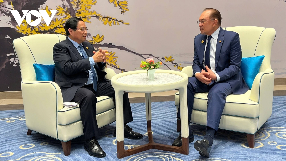 Trong cuộc gặp với Thủ tướng Malaysia Anwar Ibrahim, Thủ tướng Phạm Minh Chính đánh giá cao những nỗ lực của Malaysia trên cương vị Chủ tịch ASEAN trong giải quyết các vấn đề chung tại khu vực; góp phần củng cố đoàn kết và nâng cao uy tín, vai trò trung tâm của ASEAN; mong muốn hai bên tăng cường hợp tác trong lĩnh vực Halal, thương mại gạo, hợp tác biển...