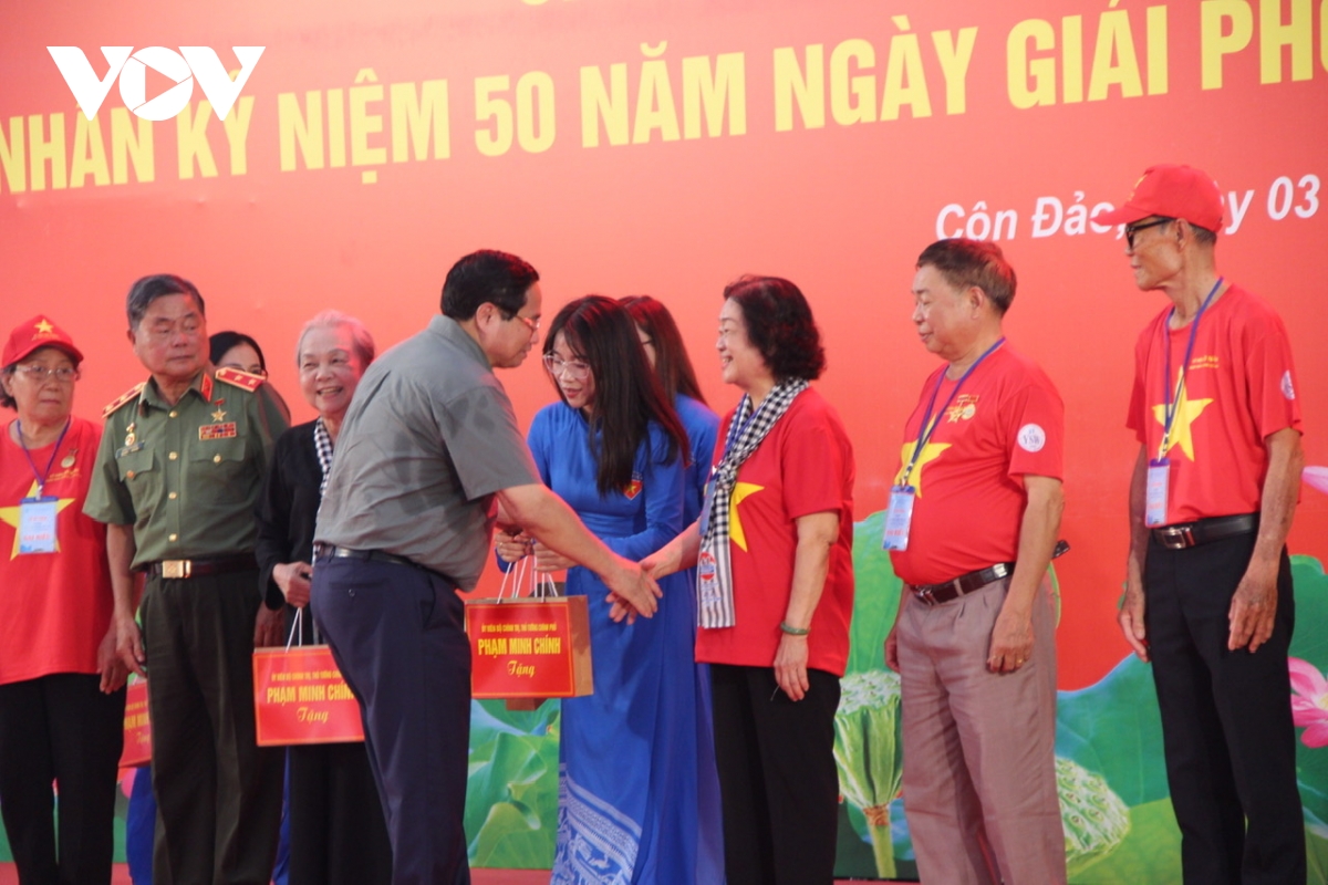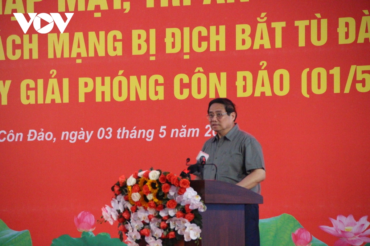 VOV.VN - Chiều 3/5, tại huyện Côn Đảo, tỉnh Bà Rịa - Vũng Tàu phối hợp cùng Bộ Quốc phòng, Ban Liên lạc Toàn quốc Chiến sĩ cách mạng Việt Nam bị địch bắt tù đày, tổ chức gặp mặt, tri ân chiến sĩ cách mạng bị địch bắt tù đày, nhân kỷ niệm 50 năm giải phóng Côn Đảo. Thủ tướng Chính phủ Phạm Minh Chính dự và phát biểu.