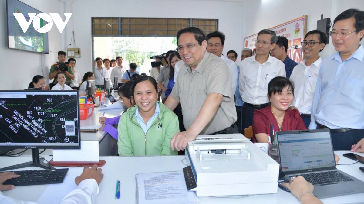 VOV.VN - Thủ tướng Phạm Minh Chính đến kiểm tra việc triển khai mô hình chính quyền 2 cấp và hoạt động của Trung tâm phục vụ hành chính công tại phường Thới Sơn, tỉnh An Giang và xã Mỹ Hiệp, tỉnh Đồng Tháp.