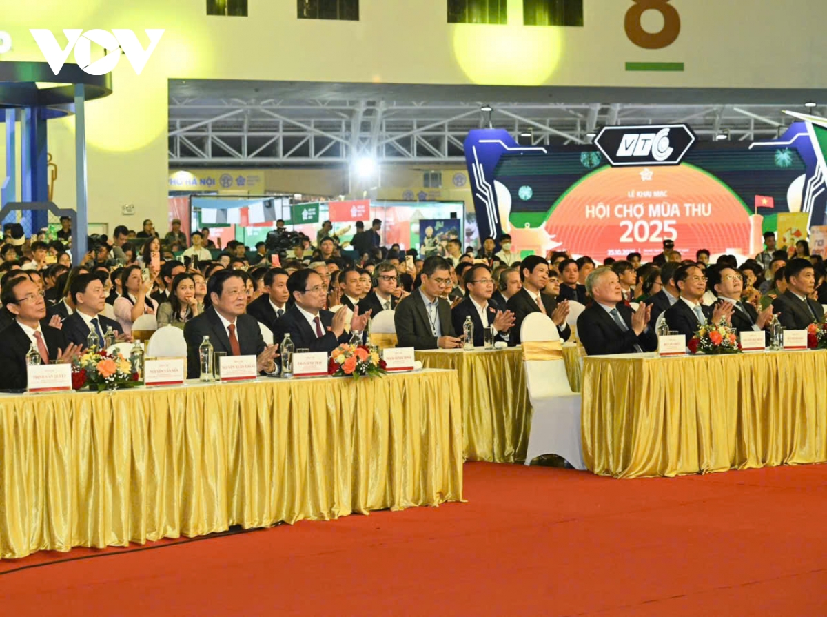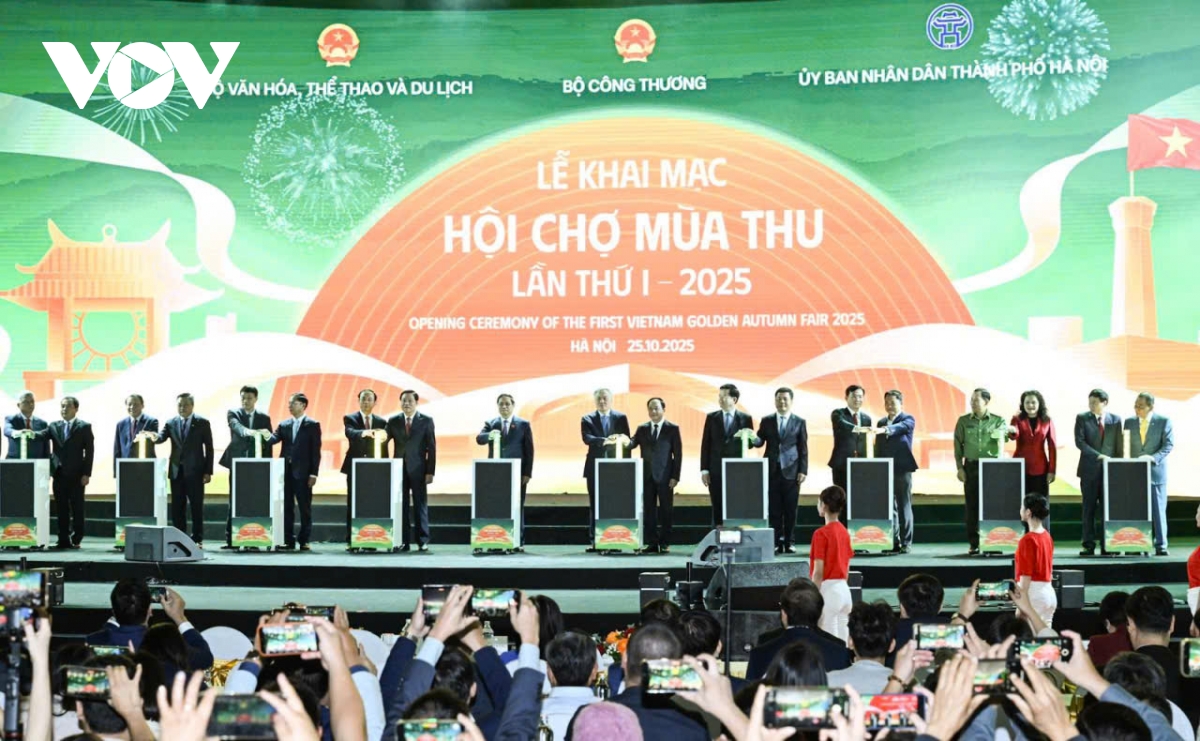 VOV.VN - Lễ Khai mạc Hội chợ Mùa Thu lần thứ nhất năm - 2025 với chủ đề “Kết nối Con người với sản xuất, kinh doanh” đã diễn ra lúc 20h tối nay. Thủ tướng Chính phủ Phạm Minh Chính tham dự, phát biểu chỉ đạo và nhấn nút khai mạc Hội chợ.