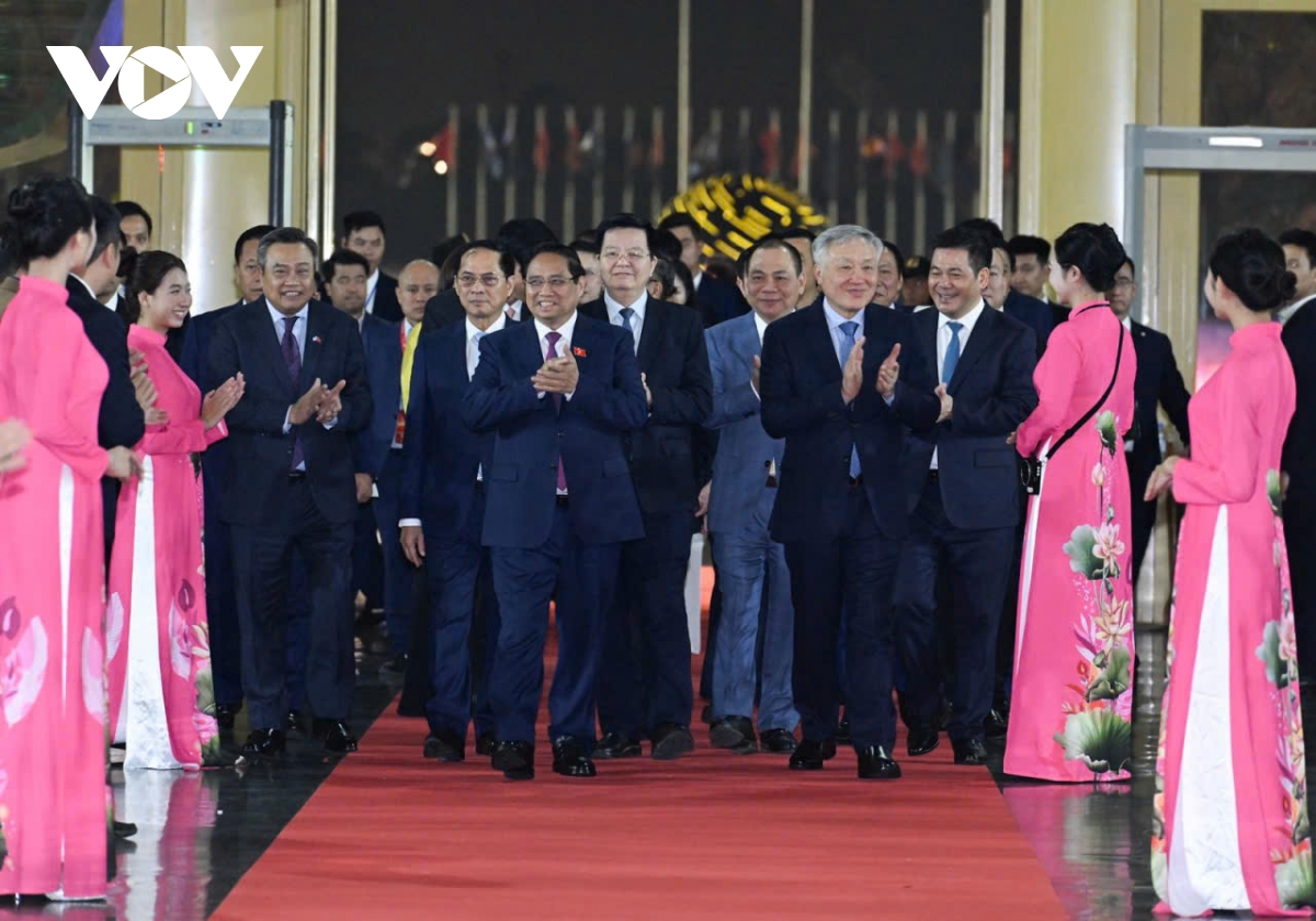 Thủ tướng Phạm Minh Chính và các đại biểu đến dự khai mạc Hội chợ Mùa Thu 2025