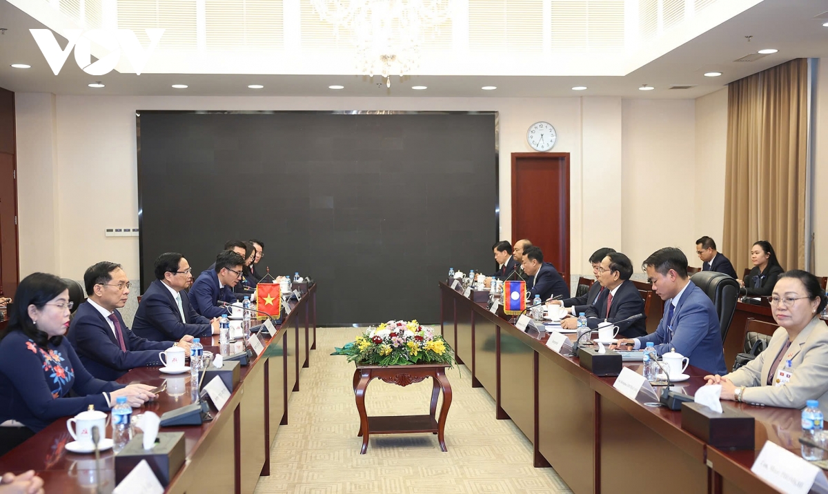 VOV.VN - Chiều 10/1/2025, tại Vientiane, trong khuôn khổ chuyến thăm Lào và đồng chủ trì Kỳ họp lần thứ 47 Ủy ban liên Chính phủ Việt Nam – Lào, Thủ tướng Chính phủ Phạm Minh Chính đã tiếp ông Bounthong Chitmany, Thường trực Ban Bí thư, Phó Chủ tịch nước Lào.