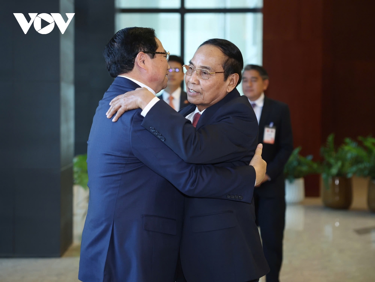 Thường trực Ban Bí thư, Phó Chủ tịch nước Lào Bounthong Chitmany vui mừng được gặp Thủ tướng Chính phủ Phạm Minh Chính, thể hiện sự gắn bó keo sơn quan hệ đặc biệt Việt Nam – Lào có truyền thống lâu đời, được tôi luyện qua khó khăn, thử thách, là tài sản chung vô giá của hai dân tộc, là quy luật tồn tại và phát triển của mỗi nước; một lần nữa cảm ơn sự ủng hộ, giúp đỡ to lớn, chí tình, chí nghĩa, kịp thời và hiệu quả mà Việt Nam đã dành cho Lào từ trước đến nay; chuyển lời thăm hỏi và chúc mừng năm mới tới Tổng Bí thư Tô Lâm, Chủ tịch nước Lương Cường, Chủ tịch Quốc hội Trần Thanh Mẫn và Thường trực Ban Bí thư Trần Cẩm Tú.