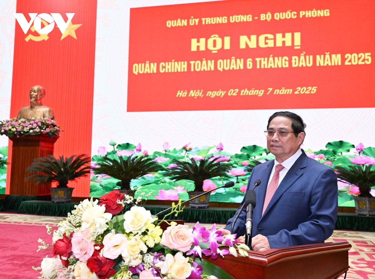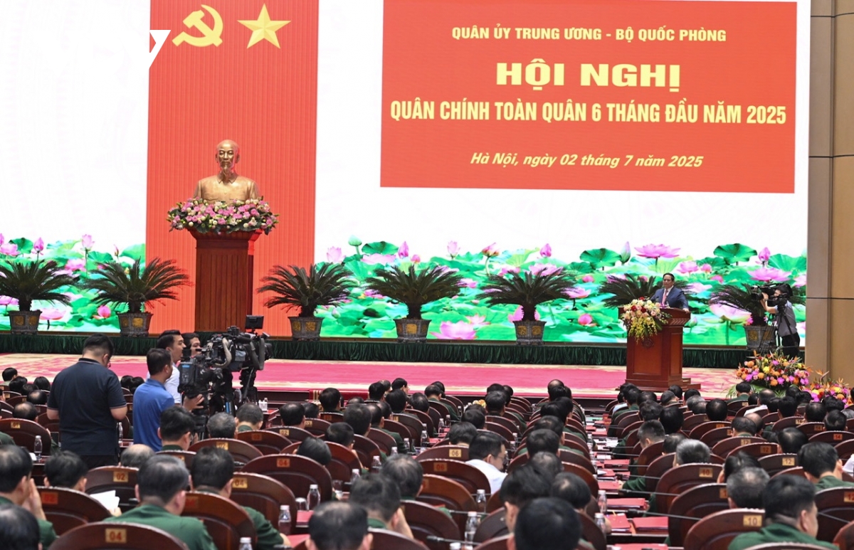 VOV.VN - Chiều nay (2/7), tại Hà Nội, Thủ tướng Chính phủ Phạm Minh Chính dự hội nghị Quân chính toàn quân 6 tháng đầu năm 2025, nhằm đánh giá kết quả thực hiện nhiệm vụ quân sự, quốc phòng trong 6 tháng qua và đề ra phương hướng, nhiệm vụ cho 6 tháng cuối năm.