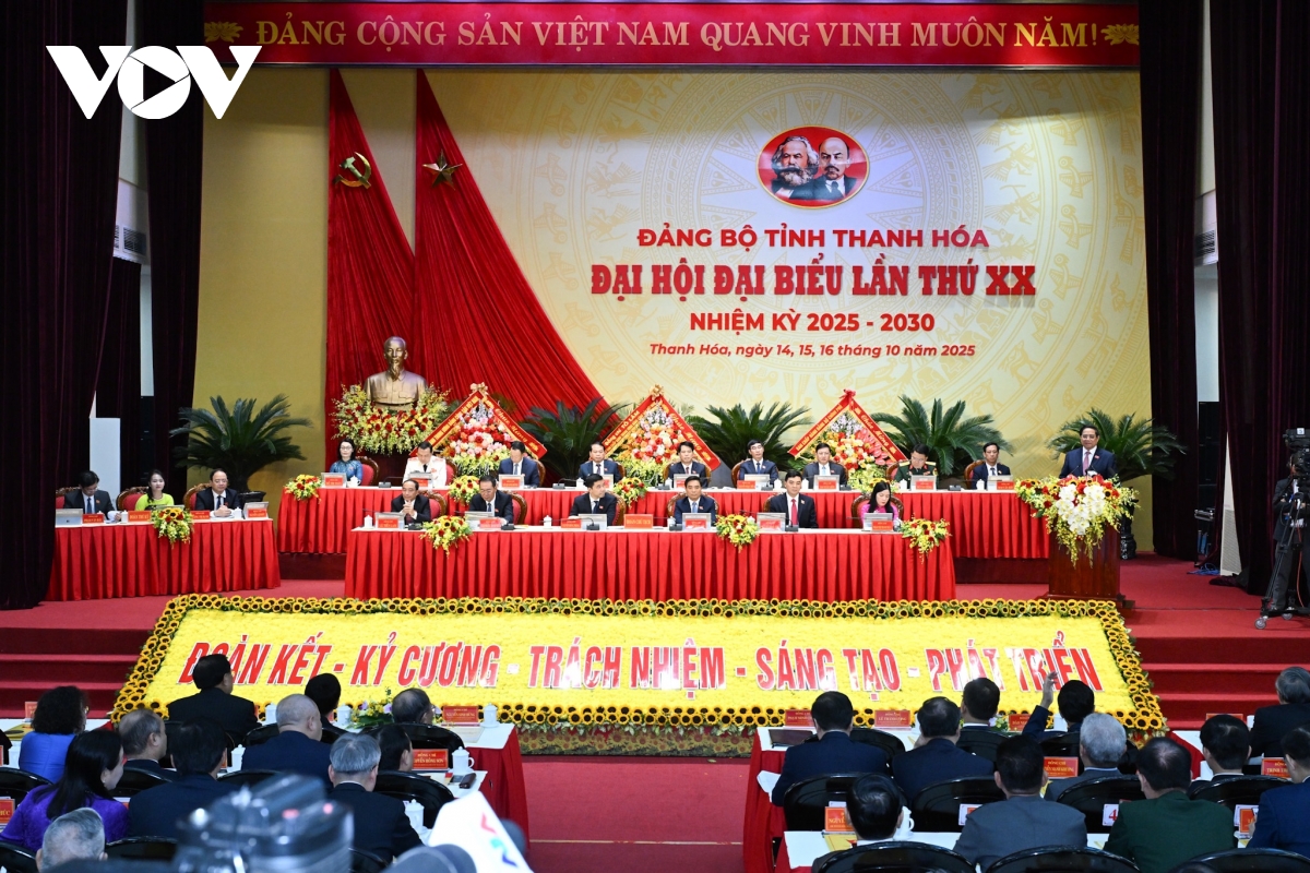 Với chủ đề "Tăng cường xây dựng Đảng và hệ thống chính trị trong sạch, vững mạnh; phát huy mạnh mẽ tiềm năng, lợi thế, nguồn lực, giá trị văn hóa, con người và sức mạnh đại đoàn kết toàn dân; phát triển nhanh, toàn diện và bền vững; phấn đấu đến năm 2030 Thanh Hóa trong nhóm các tỉnh dẫn đầu cả nước, đến năm 2045 trở thành tỉnh giàu đẹp, văn minh, hạnh phúc", sáng nay (15/10), phiên chính thức Đại hội đại biểu Đảng bộ tỉnh Thanh Hóa lần thứ XX, nhiệm kỳ 2025 - 2030 đã diễn ra, với sự tham dự của 486 đại biểu chính thức, đại diện cho hơn 240.000 đảng viên trong toàn Đảng bộ.