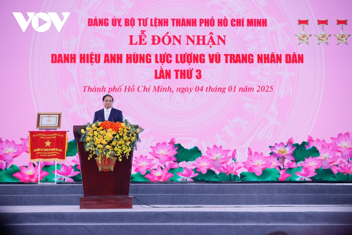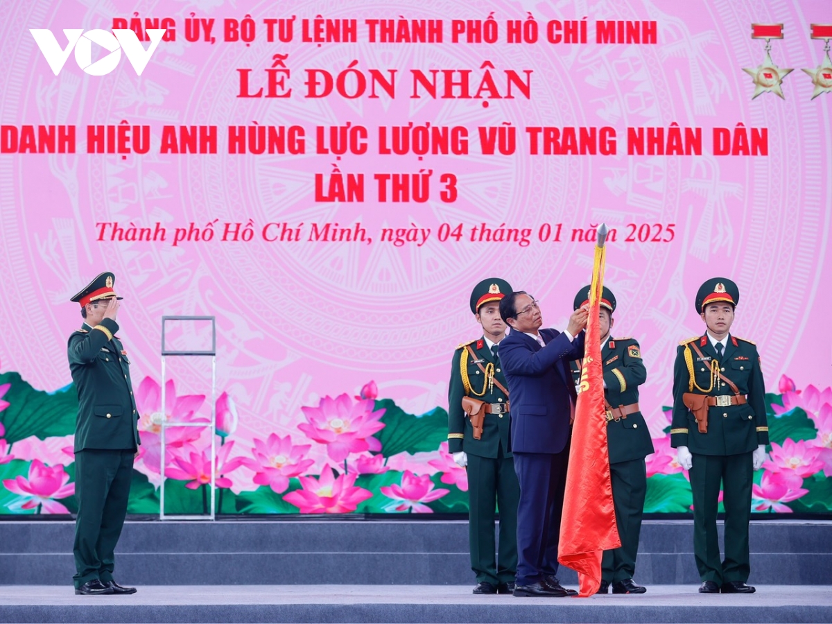 VOV.VN - Sáng 4/1, tại Thành phố Hồ Chí Minh, Thủ tướng Phạm Minh Chính dự Lễ đón nhận Danh hiệu Anh hùng Lực lượng vũ trang nhân dân lần thứ 3 của Lực lượng vũ trang Thành phố Hồ Chí Minh.
