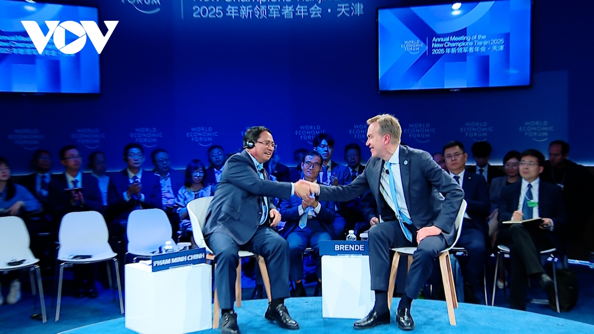 VOV.VN - Sau phiên khai mạc Hội nghị thường niên các nhà tiên phong lần thứ 16 của Diễn đàn kinh tế thế giới tại Thiên Tân, Trung Quốc, Thủ tướng Chính phủ Phạm Minh Chính dự phiên đối thoại chính sách “Kỷ nguyên mới của Việt Nam: Từ tầm nhìn đến hành động”.