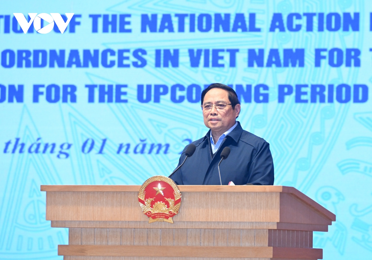 Thủ tướng đề nghị thời gian tới đẩy nhanh tốc độ khắc phục hậu quả bom mìn, thực hiện thành công mục tiêu đến năm 2045 cơ bản hoàn thành làm sạch toàn bộ diện tích đất bị ô nhiễm bom mìn đến độ sâu 0,5m; đề nghị Bộ Tài Chính dành nguồn lực, tập trung khắc phục hậu quả bon mìn.