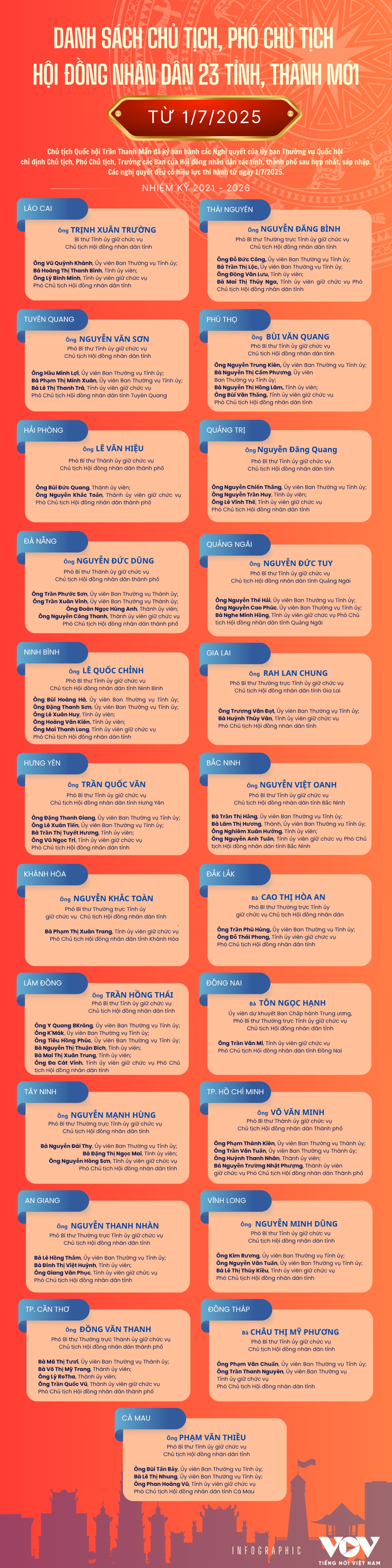 VOV.VN - Chủ tịch Quốc hội Trần Thanh Mẫn đã ký ban hành các nghị quyết của Ủy ban Thường vụ Quốc hội chỉ định chủ tịch, phó chủ tịch, trưởng các ban của hội đồng nhân dân các tỉnh, thành phố sau hợp nhất, sáp nhập. Các nghị quyết đều có hiệu lực thi hành từ ngày 1/7/2025.