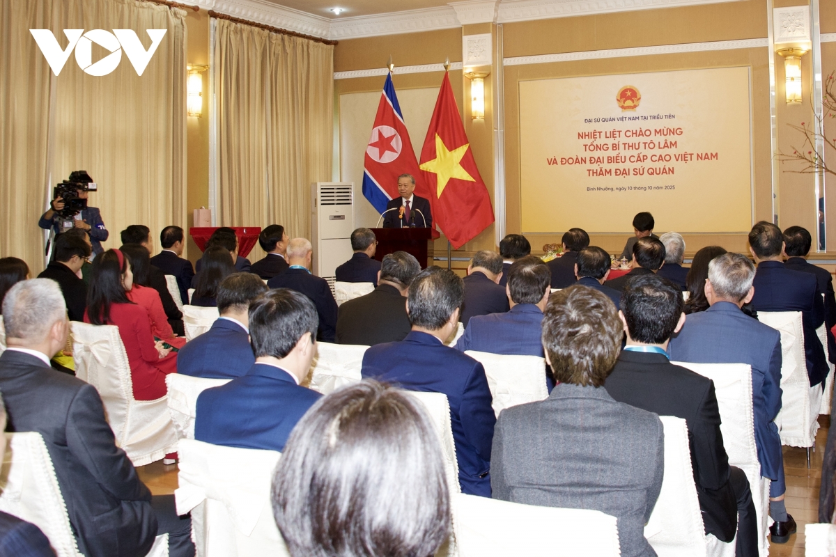 Sáng 10/10, Tổng Bí thư Tô Lâm đã tới thăm và làm việc với cán bộ, nhân viên Đại sứ quán Việt Nam tại Triều Tiên. Tại đây, Tổng Bí thư Tô Lâm nhắc lại truyền thống gắn bó giữa hai nước và khẳng định Việt Nam không bao giờ quên sự hỗ trợ, những đóng góp của Triều Tiên trong lúc Việt Nam khó khăn. Tổng Bí thư nhấn mạnh Việt Nam cam kết luôn đóng góp hết khả năng của mình cho hòa bình, ổn định trên Bán đảo Triều Tiên, trong khu vực và trên thế giới. Cũng trong sáng 10/10, Tổng Bí thư Tô Lâm đã dự Lễ khánh thành tượng Chủ tịch Hồ Chí Minh trong khuôn viên Đại sứ quán Việt Nam tại Triều Tiên.