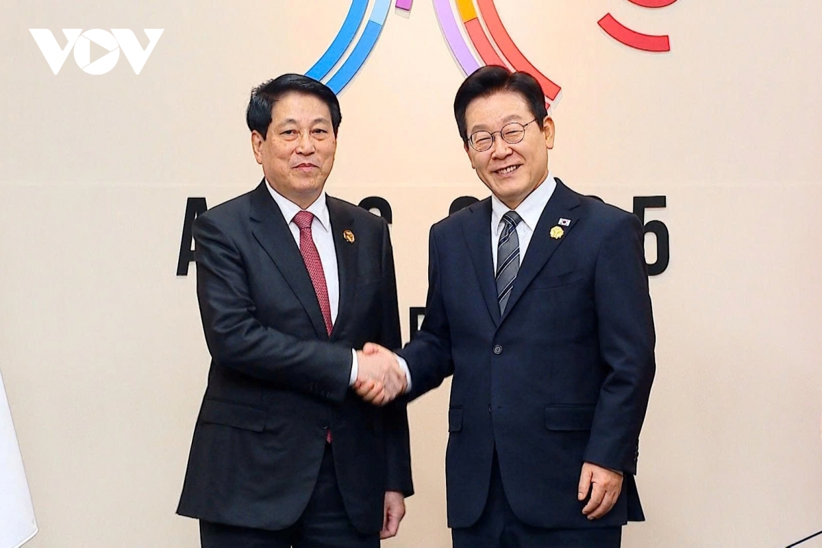 Chiều 30/10, Chủ tịch nước Lương Cường đã có cuộc hội đàm với Tổng thống Hàn Quốc Lee Jae Myung. Hai Nhà lãnh đạo nhất trí đẩy mạnh hợp tác kinh tế cùng có lợi, tạo bước chuyển lớn, thực chất trong hợp tác. Hai bên cũng nhất trí hiện thực hóa việc đưa hợp tác khoa học, công nghệ, đổi mới sáng tạo, chuyển đổi số và phát triển nguồn nhân lực thành trụ cột mới trong quan hệ song phương. Chủ tịch nước Lương Cường chúc mừng Hàn Quốc tổ chức thành công Tuần lễ Cấp cao APEC 2025, mong muốn Hàn Quốc hỗ trợ và phối hợp cùng Việt Nam tổ chức thành công Tuần lễ Cấp cao APEC 2027.