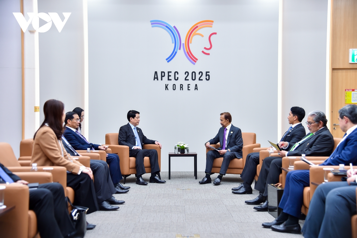Ngày 31/10, nhân dịp tham dự Hội nghị Thượng đỉnh APEC, Chủ tịch nước Lương Cường đã có cuộc gặp Quốc vương Brunei Haji Hassanal Bolkiah, Thủ tướng Nhật Bản Takaichi Sanae, Thủ tướng New Zealand Christopher Luxon, Thủ tướng Malaysia Anwar Ibrahim, Trưởng đoàn Papua New Guinea John Rosso, Trưởng đoàn Peru Teresa Stella Mera Gomez, Trưởng đoàn Hong Kong (Trung Quốc) Lý Gia Siêu. Trong ảnh: Chủ tịch nước Lương Cường gặp Quốc vương Brunei Haji Hassanal Bolkiah.