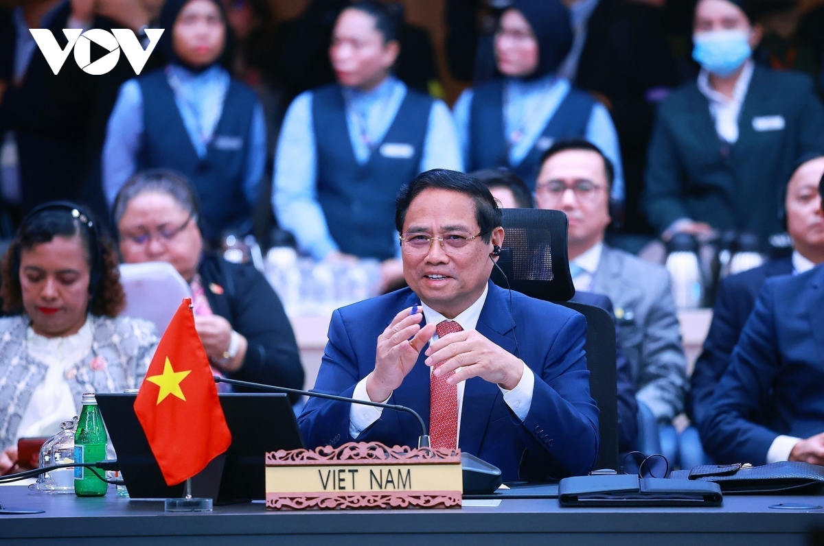 Chiều 28/10, Thủ tướng Phạm Minh Chính cùng Lãnh đạo các nước ASEAN và Thủ tướng Australia Anthony Albanese đã tham dự Hội nghị Cấp cao ASEAN - Australia lần thứ 5. Thủ tướng Phạm Minh Chính đề xuất ưu tiên trọng tâm đẩy mạnh liên kết kinh tế đa tầng nấc, tạo không gian rộng mở hơn nữa cho thương mại và đầu tư; triển khai hiệu quả các Hiệp định gắn với Tầm nhìn Cộng đồng ASEAN 2045 và Chiến lược kinh tế Đông Nam Á 2040 của Australia. Kết thúc hội nghị, lãnh đạo ASEAN và Australia đã thông qua Tuyên bố chung về phòng ngừa xung đột và quản lý khủng hoảng trong cấu trúc khu vực do ASEAN dẫn dắt. (Ảnh: TTXVN)