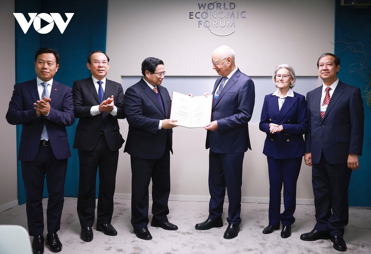Sáng 22/1, Thủ tướng Phạm Minh Chính đã tiếp Giáo sư Klaus Schwab, Nhà sáng lập kiêm Chủ tịch điều hành WEF. Thủ tướng Chính phủ đề nghị Giáo sư Schwab ủng hộ Việt Nam thực hiện chủ trương phát triển khoa học công nghệ, thông qua kết nối với các doanh nghiệp thành viên WEF. Thủ tướng cũng đề nghị WEF hỗ trợ Việt Nam và đồng chủ trì một diễn đàn kinh tế hàng năm ở quy mô thế giới tại TP.HCM. Nhân dịp này, Thủ tướng Phạm Minh Chính và đoàn Việt Nam đã chứng kiến Lễ trao bằng Tiến sĩ Danh dự của Đại học Quốc gia Hà Nội cho Giáo sư Klaus Schwab.