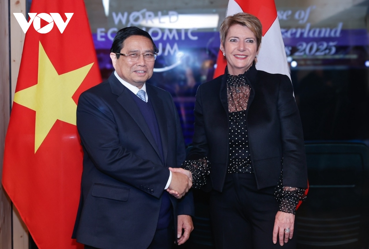 Chiều 21/1, Thủ tướng Phạm Minh Chính đã hội đàm với Tổng thống Thụy Sĩ Karin Keller-Sutter. Thủ tướng đánh giá cao Thụy Sĩ có kế hoạch tiếp tục hỗ trợ Việt Nam trong lĩnh vực hợp tác phát triển giai đoạn 2025 - 2028. Tổng thống Thụy Sĩ bày tỏ sẵn sàng mở rộng hợp tác với Việt Nam trong các lĩnh vực mới phù hợp với nhu cầu và thế mạnh của hai bên như đổi mới sáng tạo, chuyển đổi số, công nghệ cao, AI, bán dẫn, ứng phó với biến đổi khí hậu, mua bán tín chỉ các-bon, chia sẻ kinh nghiệm, hỗ trợ xây dựng trung tâm tài chính quốc tế TP.HCM… Tại hội đàm, Thủ tướng Phạm Minh Chính và Tổng thống Thụy Sĩ Karin Keller-Sutter đã chứng kiến lễ trao Bản ghi nhớ hợp tác giữa Bộ Ngoại giao Việt Nam và Bộ Ngoại giao Thụy Sĩ.
