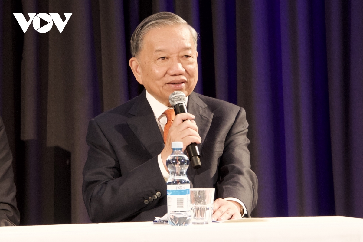 Ngày 21/10, Tổng Bí thư Tô Lâm và Phu nhân Ngô Phương Ly đã có buổi gặp gỡ cán bộ, nhân viên các cơ quan đại diện Việt Nam và đại diện cộng đồng người Việt Nam tại Phần Lan, Đan Mạch, Thụy Điển và Na Uy. Tổng Bí thư Tô Lâm chúc cộng đồng người Việt Nam tại Bắc Âu luôn đoàn kết, hướng về Tổ quốc, tiếp tục phát huy truyền thống hiếu học, nhân ái, cần cù, đóng góp cho sự phát triển của đất nước, vun đắp hình ảnh Việt Nam năng động, thân thiện, giàu bản sắc trong mắt bạn bè quốc tế. (Ảnh: TTXVN)