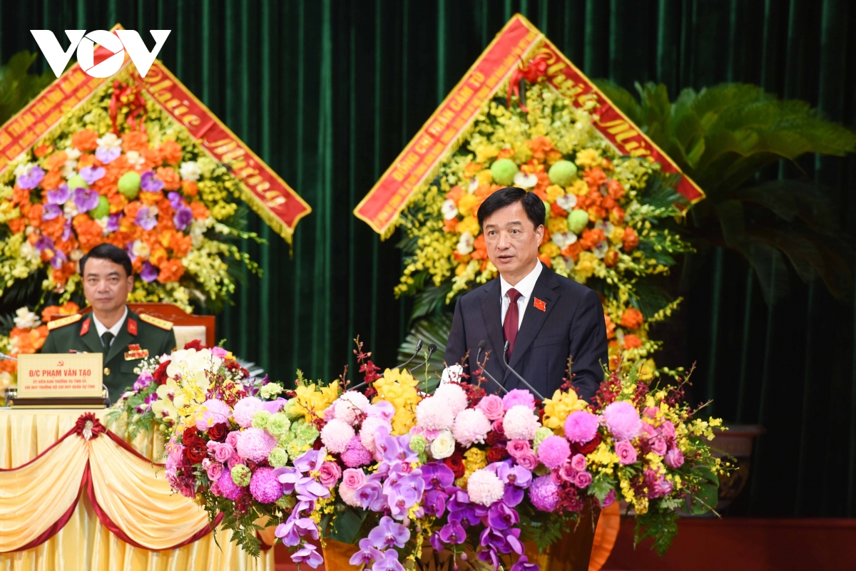 Tân Bí thư Tỉnh ủy Bắc Ninh, Thượng tướng Nguyễn Hồng Thái phát biểu nhận nhiệm vụ tại Đại hội.
