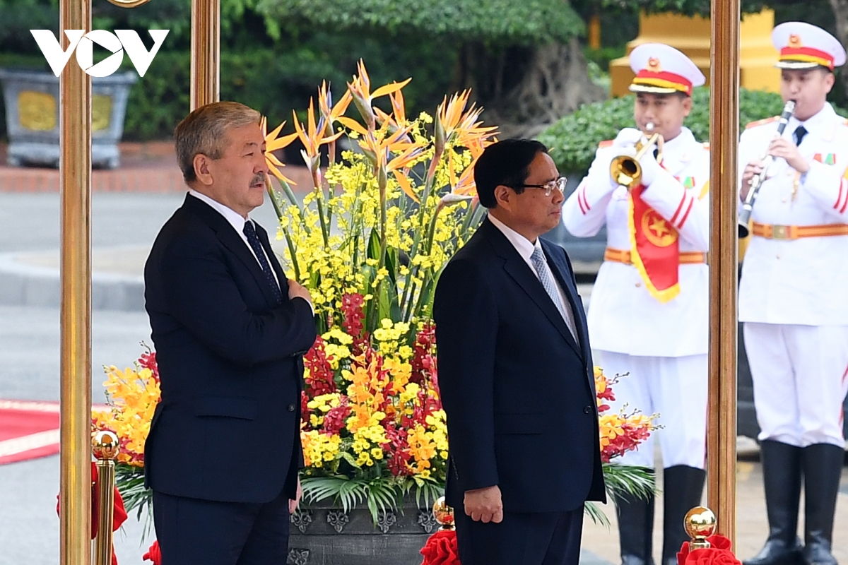 VOV.VN - Ngày 6/3, tại Hà Nội, Thủ tướng Phạm Minh Chính chủ trì Lễ đón Thủ tướng Kyrgyzstan Adylbek Kasymaliev sang thăm chính thức Việt Nam.