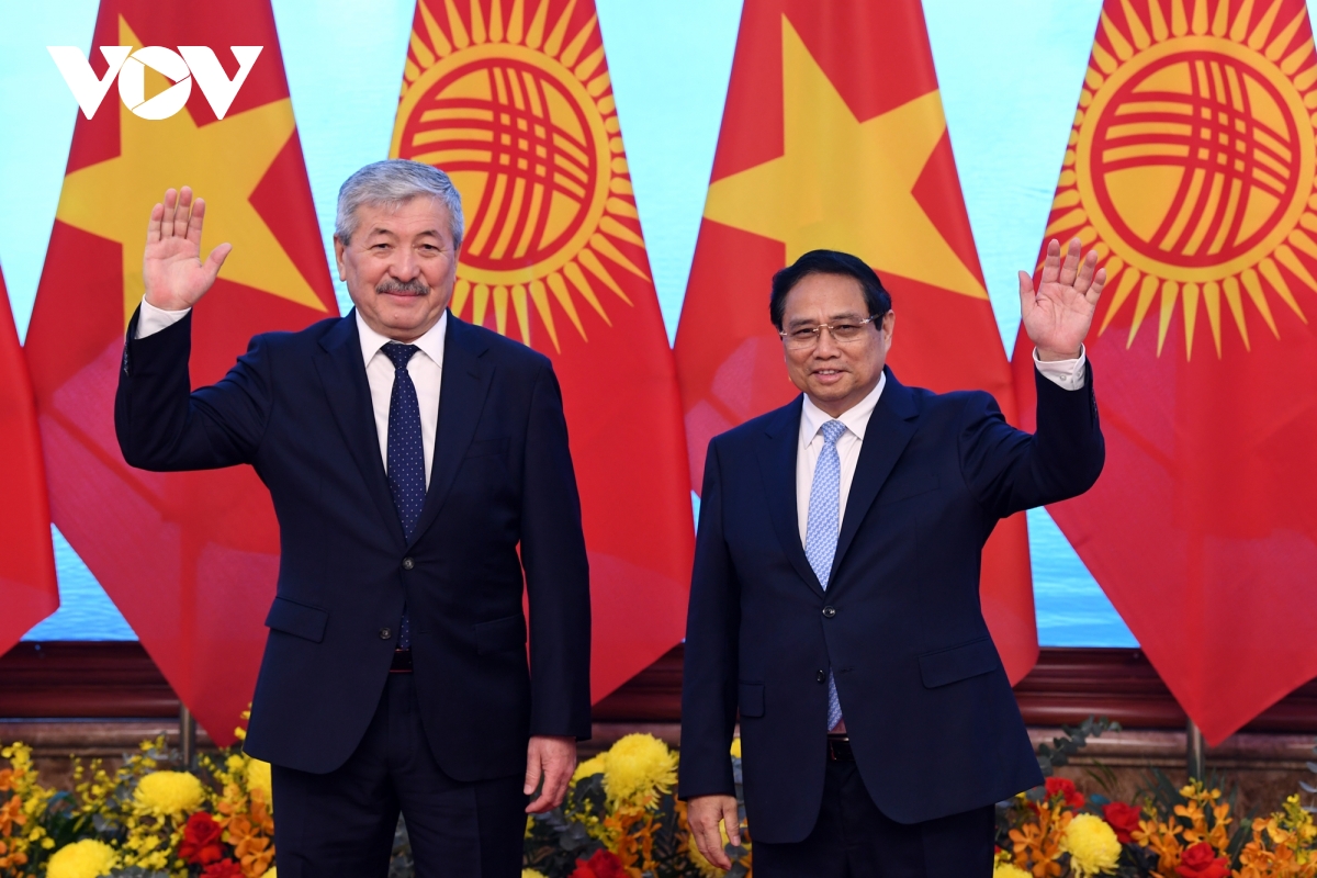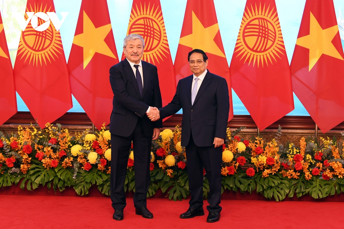 Thủ tướng Phạm Minh Chính chào mừng Thủ tướng Kyrgyzstan Adylbek Kasymaliev cùng đoàn đại biểu cấp cao sang thăm và làm việc tại Việt Nam.