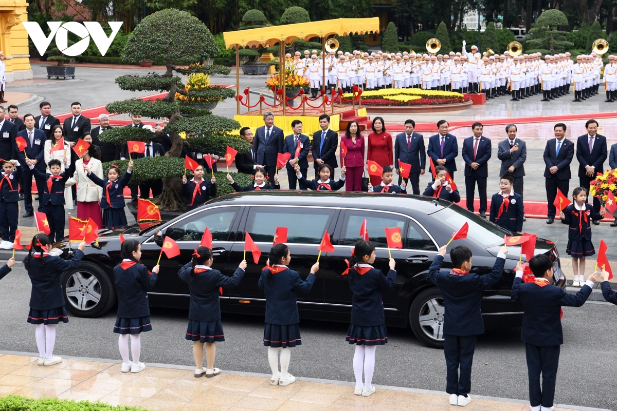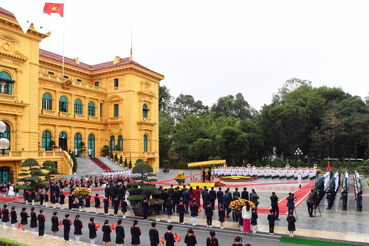Lễ đón chính thức Thủ tướng Kyrgyzstan Adylbek Kasymaliev thăm Việt Nam diễn ra tại Phủ Chủ tịch vào sáng 6/3.