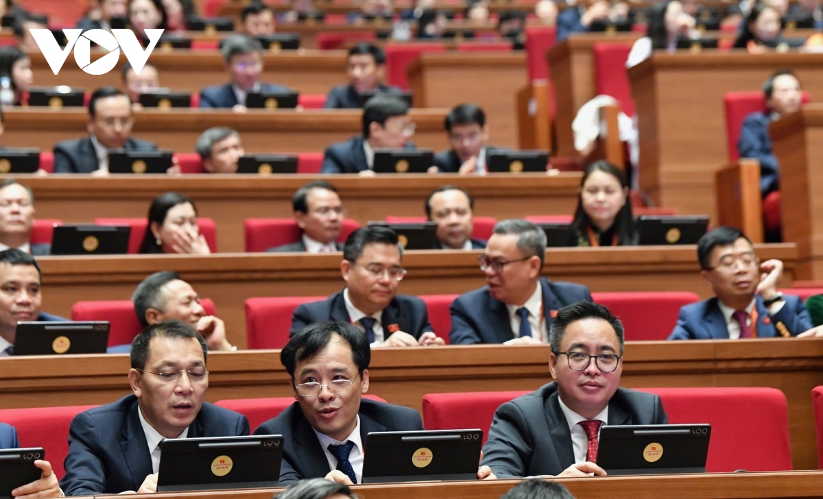 Các đại biểu biểu quyết tại phiên trù bị Đại hội đại biểu toàn quốc lần thứ XIV của Đảng.