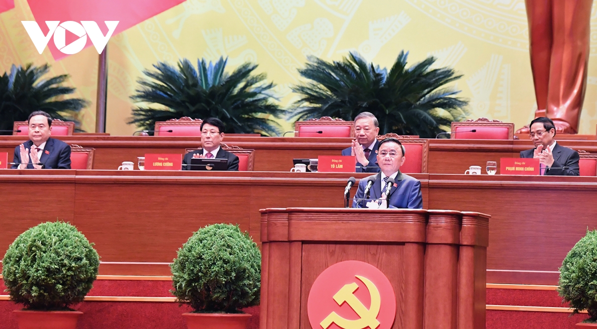 Đồng chí Lê Minh Hưng, Ủy viên Bộ Chính trị, Bí thư Trung ương Đảng, Trưởng Ban Tổ chức Trung ương báo cáo tiếp thu ý kiến các đoàn đại biểu góp ý vào quy chế làm việc của Đại hội và toàn văn dự thảo Quy chế làm việc đã tiếp thu ý kiến các đoàn đại biểu.