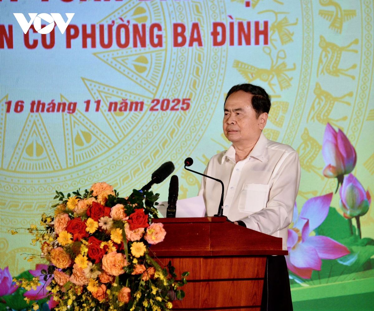 Trong không khí đoàn kết, vui tươi, phấn khởi, thân tình, trò chuyện với bà con tổ dân phố, thay mặt lãnh đạo Đảng, Nhà nước, Mặt trận Tổ quốc Việt Nam, Chủ tịch Quốc hội Trần Thanh Mẫn thông báo với người dân Cụm 1, phường Ba Đình những kết quả nổi bật về kinh tế - xã hội của đất nước thời gian qua và nhấn mạnh, đạt được kết quả này có sự đóng góp của người dân phường Ba Đình nói riêng và thủ đô Hà Nội nói chung.